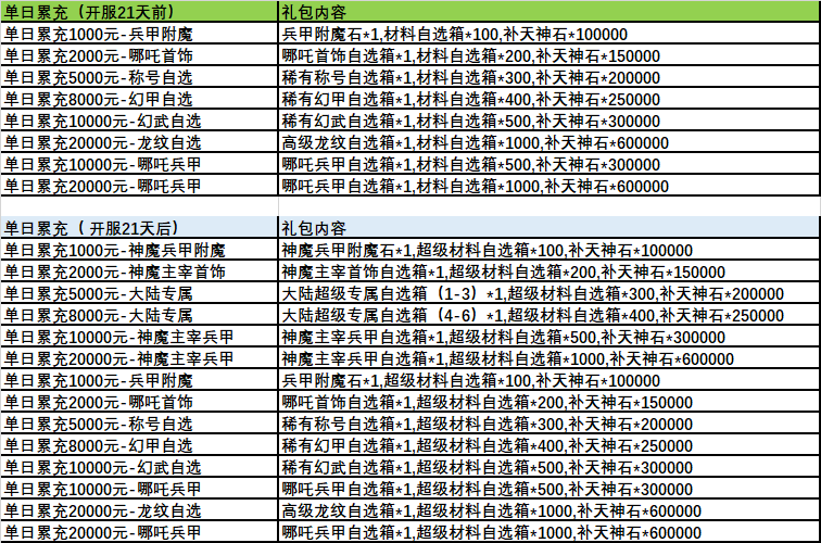 活动二:单日奖励 活动时间:2025.1.13 - 常驻(单日累充不向下兼容,领取最高充值档位礼包 备注:玩家根据自己开服申请对应的礼包码,不支持更换)